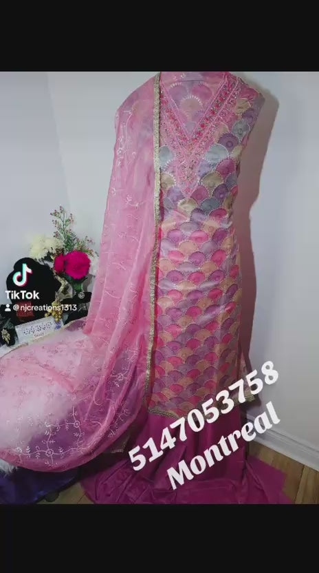 Half Organza Suit with Full Sequence Work
